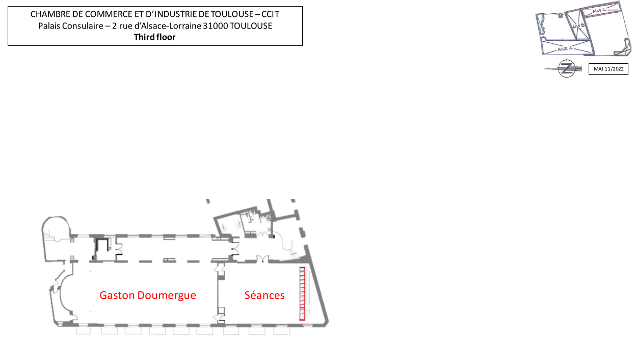 ![]() | Conference Room All workshop presentations will take place in the Séances room, near the Gaston Dourmergue room, on the third floor. Reception, Breaks and Lunches Breaks and lunch will be served in the Gaston Doumergue room on the third floor. |